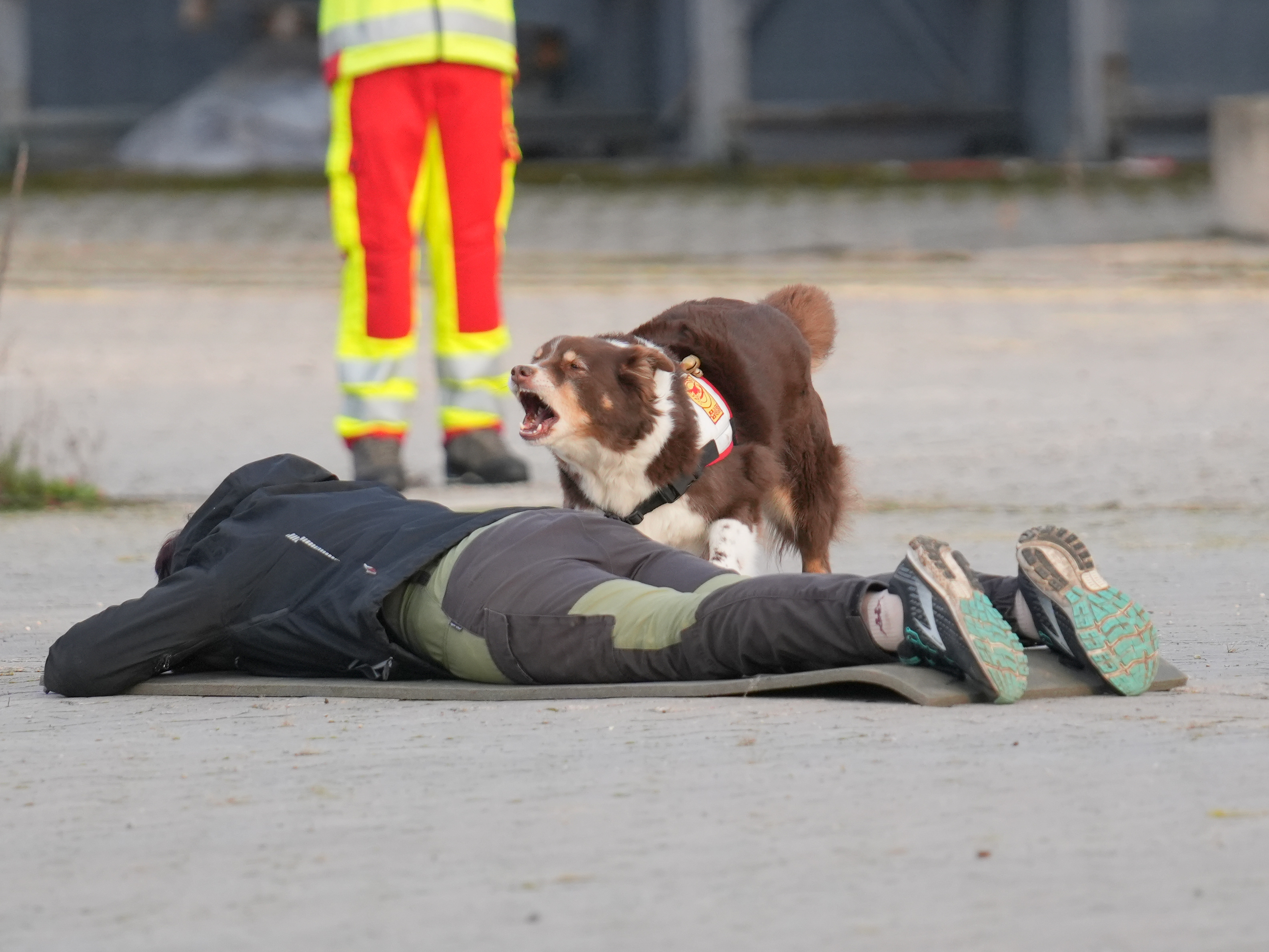Hundeführerin. Ella (nicht im Bild), Australian Shepherd, Flächensuche in Ausbildung.